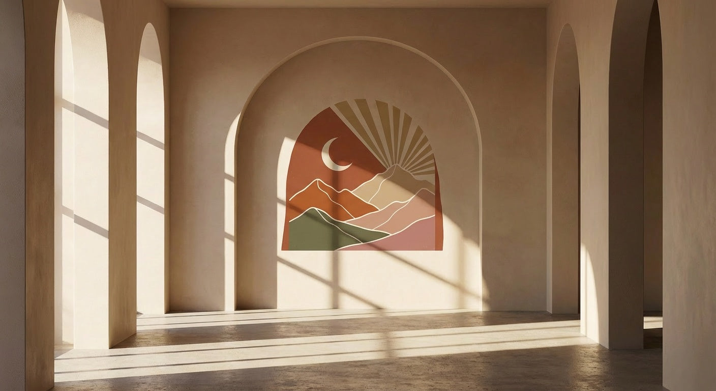 There's a stillness that only the desert knows — that quiet moment when the moon rises over sand and sky, and everything feels suspended in warm, golden calm. Desert Moon Dreamscape captures that exact breath, blending soft terracotta hues, delicate lunar forms, and free-spirited bohemian elements into a piece that feels both grounding and dreamlike. The muted palette and clean composition let the art speak without overwhelming your space, making it a perfect anchor for a high-end boho lounge draped in textured fabrics, a terracotta bedroom seeking that warm, cocooning atmosphere, or a modern desert-inspired hallway where understated elegance guides every step. Layer it alongside woven textiles and dried botanicals for an effortlessly curated look, or let it stand alone as a serene focal point. Each piece is produced using premium archival-quality inks on gallery-grade canvas, ensuring rich tonal depth and lasting vibrancy that honors every subtle gradient and whispered detail in the design.