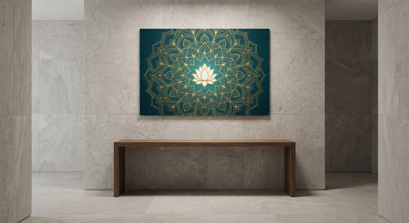 There's a stillness at the center of everything — and this piece finds it. This lotus mandala meditation canvas invites you into a quiet space where breath deepens and the world softens. Delicate petals unfold within sacred geometric patterns, each layer radiating harmony and spiritual balance. The interplay of form and symmetry draws the eye inward, creating a natural focal point for contemplation and mindful presence. Imagine it anchoring a sacred minimalist space where every element is intentional, or gracing the wall of a serene master suite where it becomes the last peaceful image you see before sleep. In a modern zen entryway, it sets an immediate tone of calm for everyone who crosses your threshold. The lotus — a timeless symbol of awakening and spiritual growth — meets the mandala's infinite geometry in a design that feels both ancient and refreshingly contemporary. Printed on premium gallery-grade canvas with rich, lasting color and a refined matte finish that honors every intricate detail.
