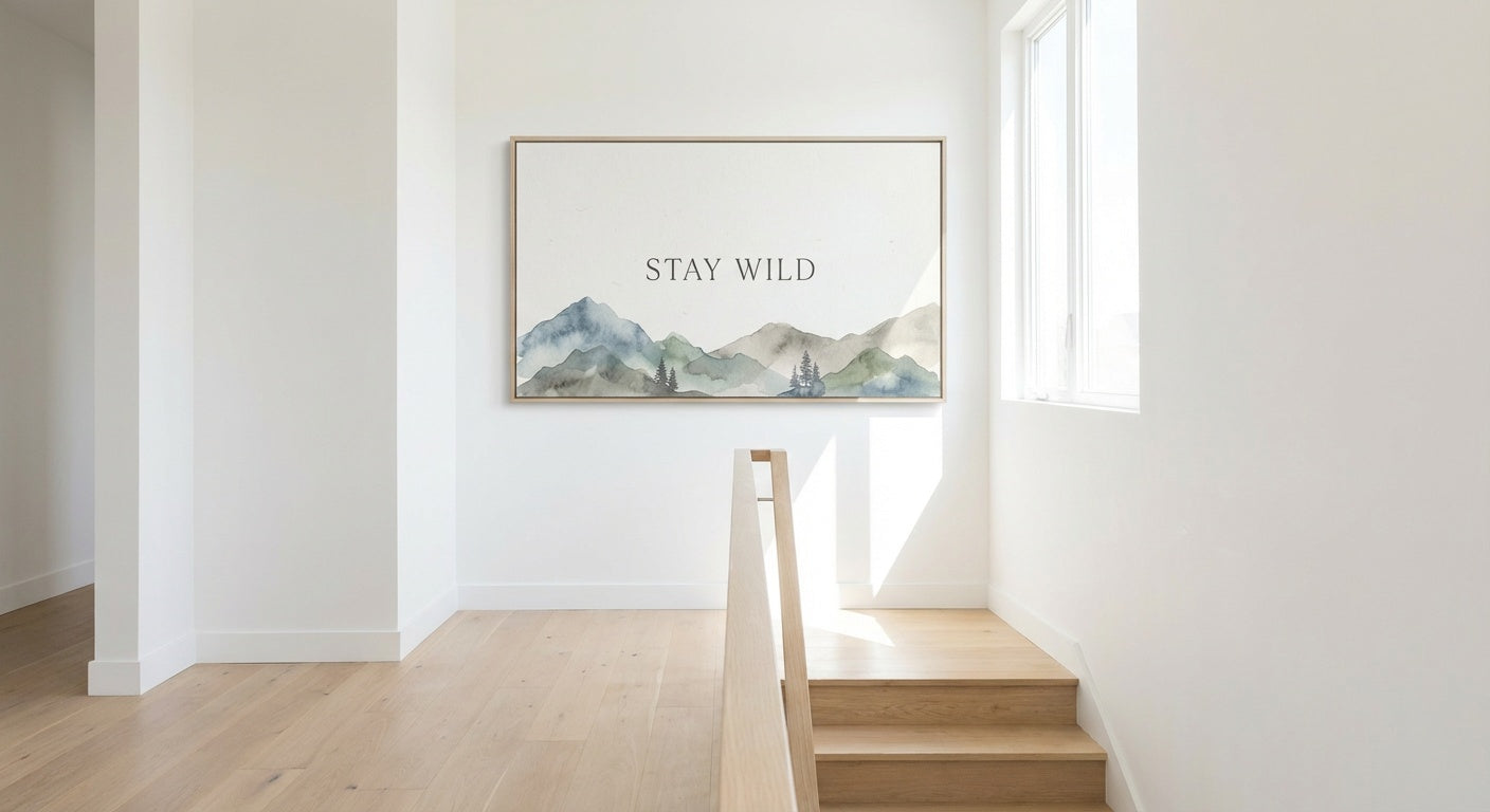 There's a quiet rebellion in choosing to stay wild — in honoring the untamed part of yourself even as life pulls you toward routine. This striking piece pairs the phrase "Stay Wild" with organic botanical elements and refined typography, creating a visual reminder to protect your sense of wonder and adventure. Earthy tones and delicate nature-inspired textures ground the design in calm sophistication, making it feel less like a motivational poster and more like a personal manifesto. Hang it in a zen professional office where it softens the pace of a busy day, style it in a Scandinavian landing to greet you with intention every time you walk through the door, or let it anchor the energy of a minimalist wellness studio where mindfulness meets movement. The muted palette and elegant composition blend effortlessly into neutral, nature-forward spaces without overwhelming the room. Printed on premium canvas with archival-quality inks, every detail — from the whisper-thin botanical lines to the bold lettering — arrives crisp, vivid, and built to inspire for years to come.
